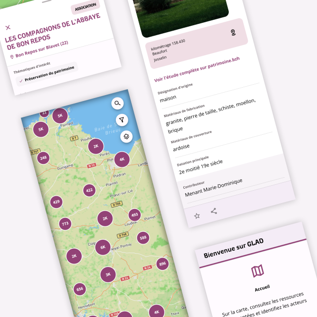 En 2021, La Région Bretagne a confié à reciproque la conception et la réalisation d'une refonte totale de l'interface numérique de l'application "GLAD" ("patrimoine" en breton) pour la rendre plus accessible, plus efficace et plus utilisable au quotidien par ses usagers.
